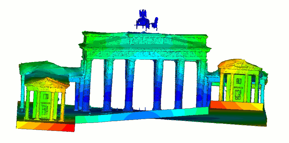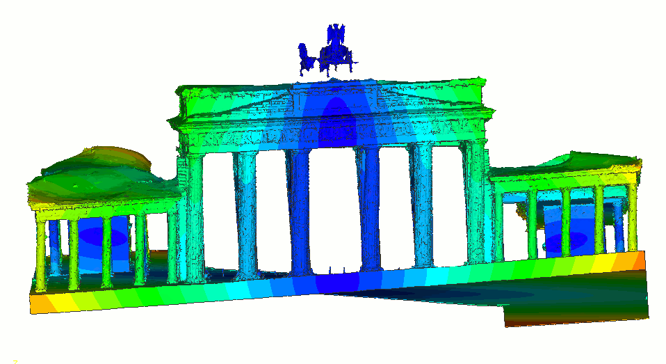 The two sides of the Brandenburg Gate showing an exaggerated movement in an Eigenform.